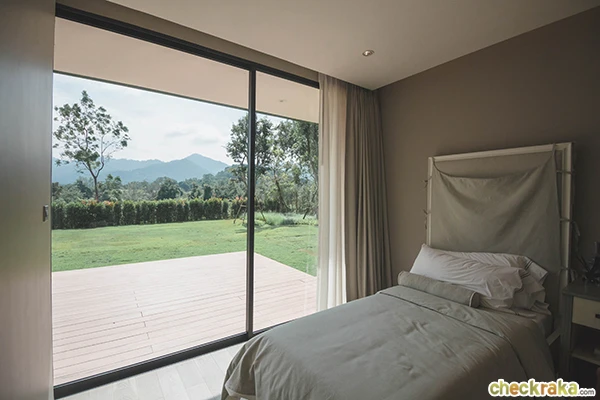 ส่วนอีกห้องเป็นห้องใหญ่ค่ะ กระจกเปิดเต็มบานชมวิวเขาได้เต็มๆ