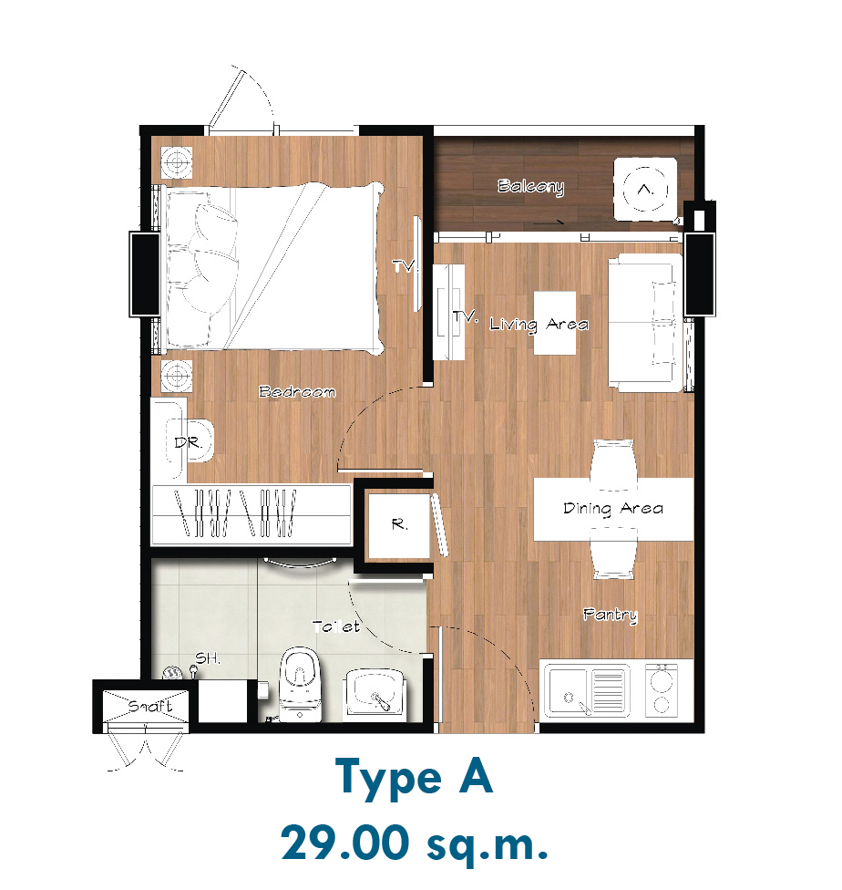 - ขนาด 29 ตารางเมตร (คลิกเพื่อชม Plan ห้อง)