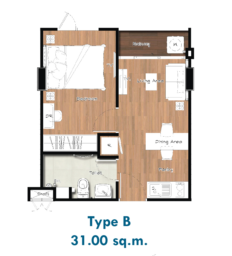 - ขนาด 31 ตารางเมตร (คลิกเพื่อชม Plan ห้อง)