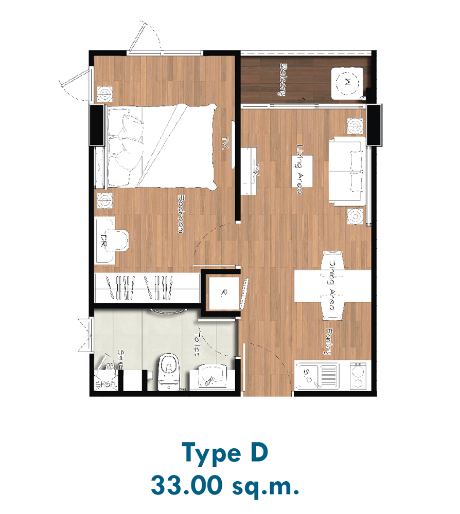 - ขนาด 33 ตารางเมตร (คลิกเพื่อชม Plan ห้อง)