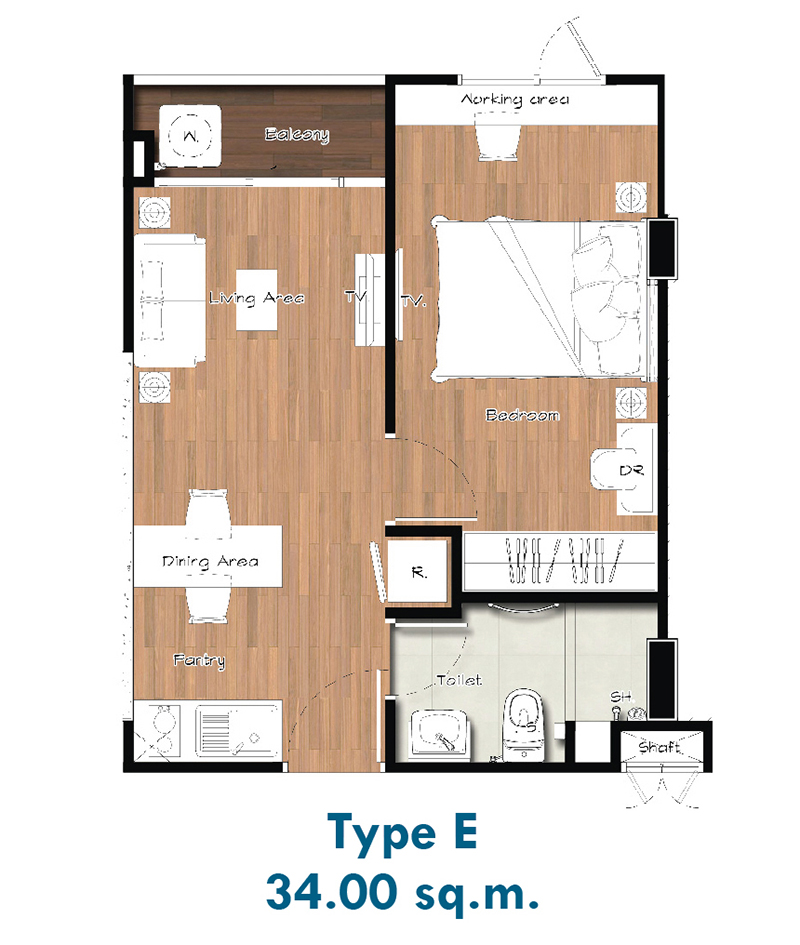 - ขนาด 34 ตารางเมตร (คลิกเพื่อชม Plan ห้อง)