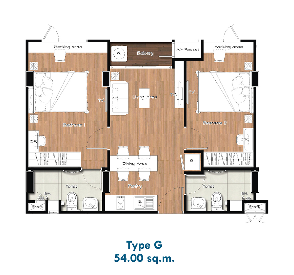 - ขนาด 54 ตารางเมตร (คลิกเพื่อชม Plan ห้อง)
