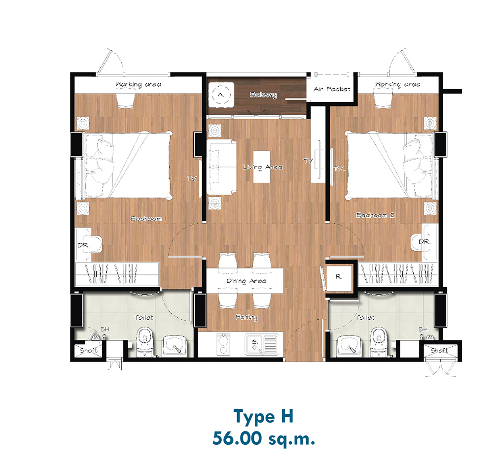 - ขนาด 56 ตารางเมตร (คลิกเพื่อชม Plan ห้อง)
