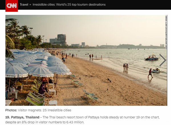 Pattaya is ranked in World’s 20 top tourism destinations by CNN in January 2016