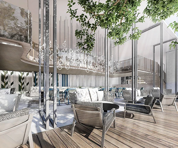 ร้านอาหารและบาร์แบบ Duplex นั่งชมวิวทะเลขณะรับประทานอาหาร