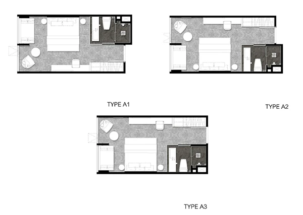 - แบบห้อง Type A1, A2, A3 - 21.7 sq.m. (Ocean Front & Mountain View) และ Type B1, B2 - 26.2 sq.m. (Ocean View)