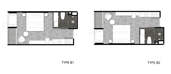 | การออกแบบ | เป็นคอนโดสไตล์โรงแรม พร้อมร้านอาหาร/บาร์ พร้อมพื้นที่ส่วนของ Staff แยกสัดส่วน | เป็นคอนโดสำหรับการอยู่อาศัย |