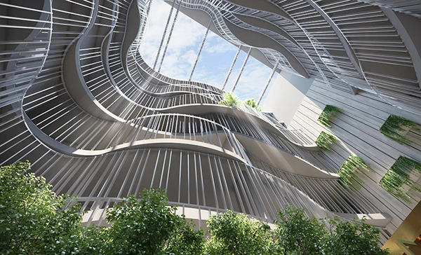 พื้นที่ชั้น 1 และ Lobby ออกแบบให้เป็นพื้นที่สีเขียว ไล่ระดับขั้นบันไดให้เข้ากับคอนเซปต์ The misty canyon