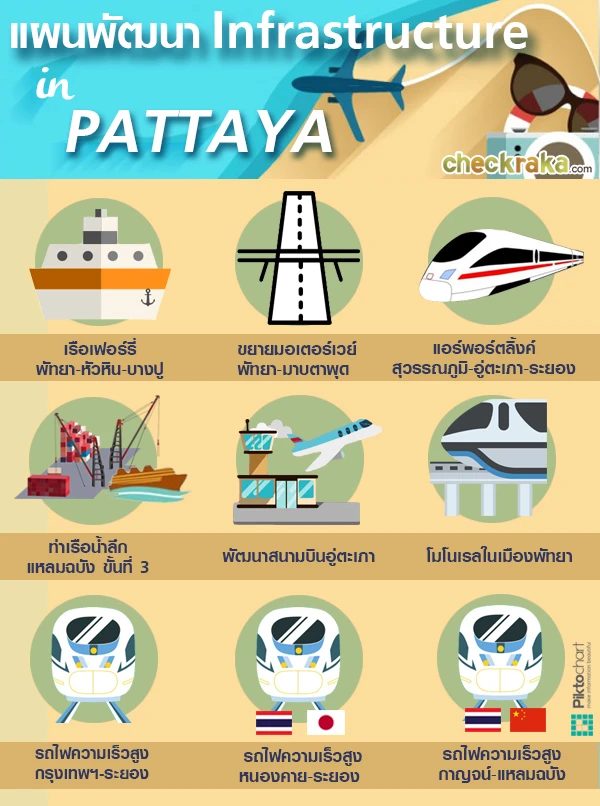 มองย้อนอดีตกันไปแล้ว หันหน้าไปมองในอนาคตกันบ้าง อีกไม่กี่ปีข้างหน้าเหล่าโครงสร้างพื้นฐาน (Infrastructure) ก็พร้อมที่จะมุ่งหน้าเข้าสู่พัทยากันแทบทุกแบบ ซึ่งปัจจุบันก็เปิดไปบ้างแล้วอย่างเรือเฟอร์รี่ที่สร้างความตื่นเต้นและดีใจให้กับนักท่องเที่ยวเป็นอย่างมาก