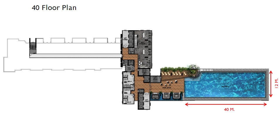 ชั้น 40-41 มี Sky Lounge, Infinity-Edge Pool และ Duplex Gym