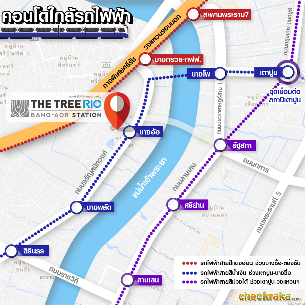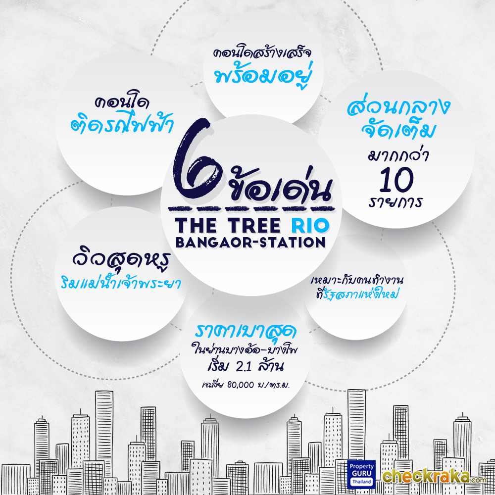 หลายคนมองหาที่อยู่อาศัยที่อยู่ในเมือง ใกล้ที่ทำงาน ที่สำคัญต้องเดินทางสะดวก แต่ราคาคอนโดมิเนียมในตัวเมืองก็ราคาพุ่งทีเดียว มาถึงยุคนี้ พ.ศ. 2560 แล้ว แผนการสร้างรถไฟฟ้าสายสีน้ำเงิน สายสีม่วง สายสีแดงอ่อน, Project ใหญ่ๆ อย่างรัฐสภาแห่งใหม่, การปรับปรุงถนน, รวมถึงแผนก่อสร้างสะพายเกียกกายในย่านจรัญสนิทวงศ์ ก็ถือว่าเป็นสัญญาณที่ดีของการขยายตัวเมืองออกไปยังฝั่งธนฯ แน่นอนว่ามีคอนโดมิเนียมติดรางรถไฟฟ้าหลายโครงการที่เพิ่งเปิดตัวไปและหลายๆ โครงการก็สร้างเสร็จพร้อมให้ลากกระเป๋าเข้าไปอยู่ ตามไปดูกันว่า ราคาจะเป็นอย่างไรบ้าง มีโครงการไหนน่าสนใจบ้าง ขอบอกว่า เดอะ ทรี ริโอ้ บางอ้อ สเตชั่น (The Tree Rio Bang - Aor Station) เป็นหนึ่งในโครงการที่น่าสนใจทีเดียวค่ะ