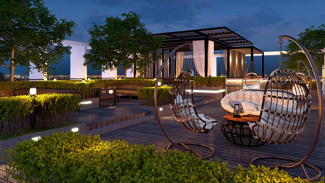 ภาพจำลองบรรยากาศ พื้นที่นั่งชมวิวบริเวณ Sky Garden สวนสีเขียวลอยฟ้า