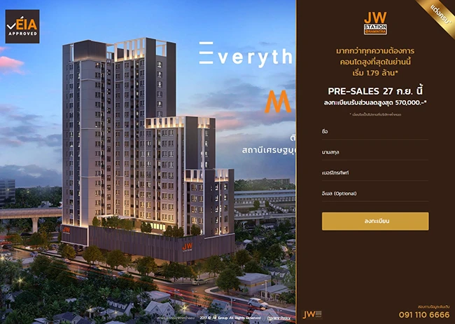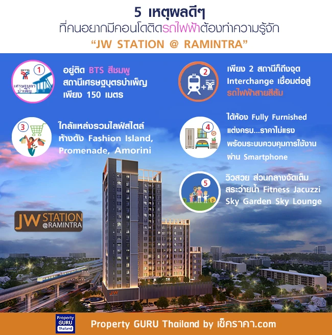 ติดต่อโครงการ JW Station @ Ramintra โทร. 091-110-6666 หรือเว็บไซต์ www.jwgroupthailand.com
