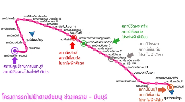 "ตารางอัพเดตสถานะการก่อสร้าง 5 สายรถไฟฟ้าที่มีแผนเชื่อมต่อกับรถไฟฟ้าสายสีชมพูในอนาคต"