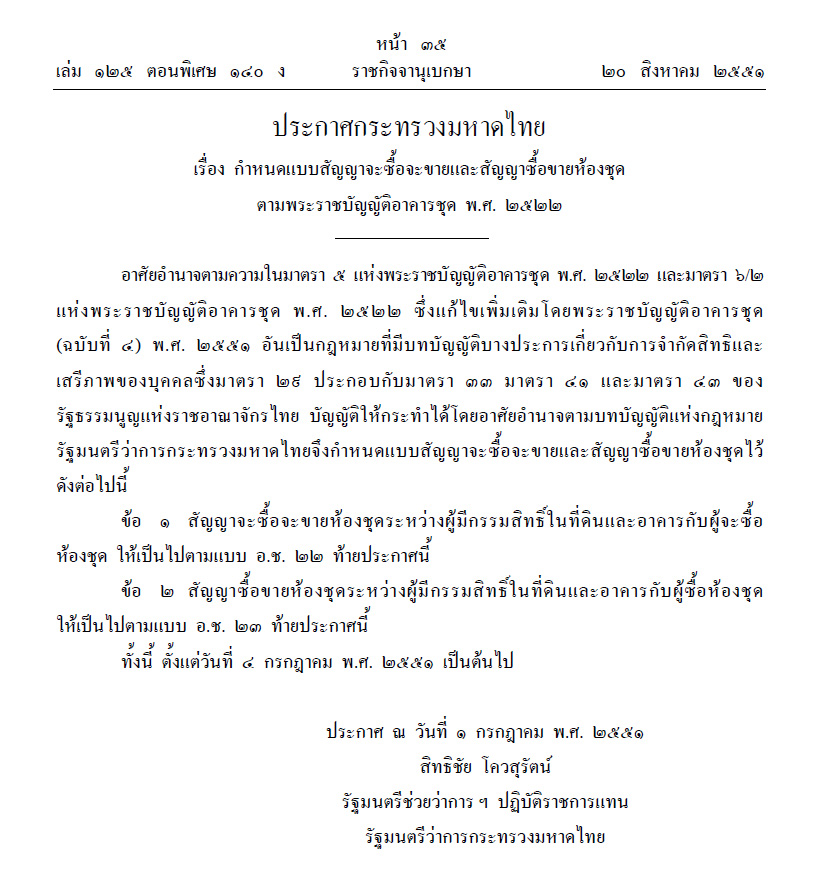 หากเราจะซื้อคอนโด แล้วเมื่อถึงเวลานัดกันทำสัญญา เจ้าของโครงการ หรือเซลล์เอาสัญญาจะซื้อจะขายคอนโดมาให้ลงนาม แล้วสัญญานั้นมีเนื้อหา หรือหน้าตาที่แตกต่างจากสัญญามาตรฐานตามประกาศกระทรวงมหาดไทย (ดูได้จากประกาศกระทรวงมหาดไทย เรื่อง กำหนดแบบสัญญาจะซื้อจะขายและสัญญาซื้อขายห้องชุด ประกาศวันที่ 1 กรกฎาคม 2551) ให้ระวังนะครับว่าสัญญานั้นอาจมีเนื้อหา หรือข้อความที่เอาเปรียบ หรือไม่เป็นธรรมกับท่านได้ ทางออกในกรณีนี้คือท่านอาจขอชะลอการลงนาม ขอเวลาตรวจสอบสัญญาเพิ่มเติม และขอให้มีการแก้ไข หรือตัดออก และถ้าจำเป็นอาจร้องเรียนสคบ.ได้ เพราะจริงๆ แล้วถ้าเราเจอเจ้าของโครงการทำแบบนี้ ถือว่าเจ้าของโครงการทำผิดพรบ.อาคารชุด และมีโทษตามกฎหมายนะครับ