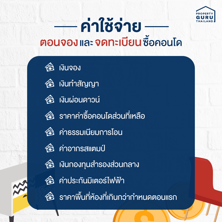1. ค่าใช้จ่ายตอนจองและจดทะเบียนซื้อคอนโด