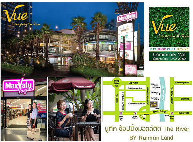 The River คอนโดริมน้ำสุดหรู ตั้งอยู่ในซอยเจริญนคร 13 เป็นคอนโด High Rise ความสูง 71 ชั้น ที่เปิดรับวิวริมแม่น้ำเจ้าพระยาสุดสวย ภายในโครงการมีห้องเพนท์เฮ้าส์ ราคากว่า 170 ล้านบาท (ตารางเมตรละ 289,153 บาท) จำนวนทั้งหมด 18 ยูนิต นอกจากวิวแม่น้ำสุดอลังการแล้ว The River ยังมีคอมมูนิตี้มอลล์สร้างเสร็จใหม่เอี่ยมตั้งอยู่ภายในโครงการอย่าง "VUE" (วิว) บูติกช้อปปิ้งมอลล์สไตส์ฟิวชั่นหรู พื้นที่กว่า 7,800 ตารางเมตร มีรูปแบบเป็นอาคาร 4 ชั้น พร้อมชั้นจอดรถใต้ดิน โดยภายในได้รวบรวมทั้งร้านค้า ร้านอาหาร และบริการต่างๆ ไว้มากมาย อาทิ ซูเปอร์มาร์เก็ต Max value ร้านกาแฟชิลๆ ที่เปิดตลอด 24 ชั่วโมง อย่าง Tom "n" Tom Coffee พร้อมร้านอาหาร และร้านเบเกอรี่ เป็นส่วนตัวด้วยการแยกทางเข้า-ออก และที่จอดรถของผู้มาใช้บริการกับผู้อยู่อาศัยออกจากกัน