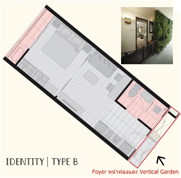 แปลนห้อง Type B "เอ สเปซ ไอดี อโศก-รัชดา" (A Space I/D Asoke-Ratchada) แม้ภายในห้องอาจจะดูธรรมดาทั่วไป แต่ที่หน้าห้องนั้นได้ถูกสร้างให้เป็นโถงทางเข้าด้านหน้า (Foyer) เพิ่มขึ้นมา โดยสามารถวางตู้ใส่รองเท้าตรงส่วนนี้ได้ และเป็นพื้นที่เล็กๆ สำหรับระบายอากาศป้องกันความชื้นจากห้องน้ำในตัวห้องชุดได้