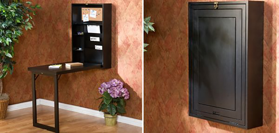 ดูเผินๆ เวลาไม่ได้กางออกมา จะดูเหมือนตู้ยา แต่ความจริงแล้วคือโต๊ะทำงานเล็กๆ ที่พับเข้าออกได้ ถือว่ากินพื้นที่น้อยมากๆ สำหรับห้องเล็กๆ ที่ไม่อยากวางโต๊ะเขียนหนังสือให้เกะกะพื้นที่