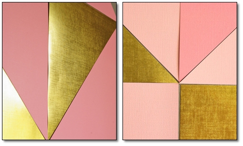 ใช้กระดาษ 3 สี ได้แก่ สีชมพูอ่อน, สีชมพูเข้ม และสีทอง โดยตัดกระดาษเป็นทรงเรขาคณิตให้ออกมาตามรูป จากนั้นใช้เทปกาว 2 หน้า แปะลงไปบนผนังห้องนอนค่ะ ค่อยๆ ติดทีละชิ้นอาจจะให้ดินสอกำหนดจุดเพื่อความแม่นยำก็ได้นะคะ คุณจะได้หัวใจขนาดใหญ่ สีสดใส แปะอยู่กลางห้อง สดใสทีเดียวค่ะ