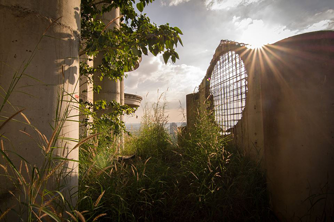 บริเวณที่แสงเข้าถึงและบริเวณระเบียงจะมีหญ้าขึ้นสูง แต่เห็นวิวชัดเจน