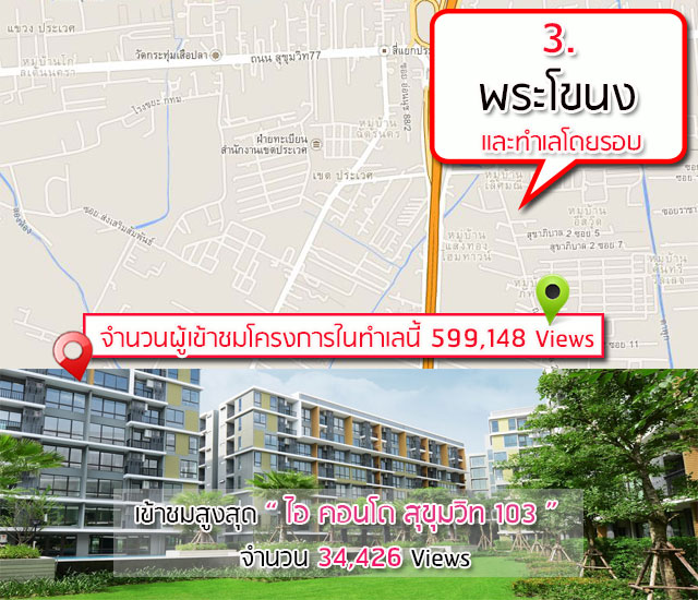 ในช่วงปีที่ผ่านมาคอนโดบนถนนสุขุมวิทช่วงปลายๆ รวมถึงพื้นที่ใกล้เคียง มีการขยายตัว และพัฒนากันหลายโครงการมากๆ โดยเฉพาะจาก Developer รายกลางๆ หรือรายเล็กๆ สาเหตุหลักๆ ก็น่าจะเนื่องมาจากที่ดินบริเวณสุขุมวิทช่วงต้นๆ และกลางๆ แพงมากขึ้นเรื่อยๆ โดย 3 อันดับคอนโดที่คนเข้าดูเยอะที่สุดบนเว็บไซต์เราคือ