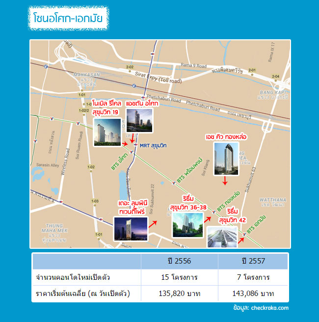 เห็นข้อมูล Snapshot ย้อนหลังปี 2556-2557 พร้อมกับมุมมอง SWOT Analysis ของ Checkraka แบบนี้แล้วคงทำให้มองเห็นภาพกว้างๆ ของความน่าสนใจของแต่ละโซนกันนะคะ สำหรับปี 2558 นี้ก็จะมีโครงการคอนโดใหม่ๆ เด็ดๆ ในโซนข้างบนนี้หลายโครงการที่น่าสนใจสำหรับลงทุน เช่น โครงการ Mixed Use คอนโดผสมโรงแรมของสยามนุวัตรฯ ตรงสี่แยกอโศก โครงการ Ashton Chula-Silom ของอนันดาฯ เยื้องๆ จามจุรีแสควร์ และ Whizdom Urban Sukhumvit ของ Magnolia ตรงปิยรมย์ สปอร์ตคลับเก่า ซึ่งก็คงต้องติดตามกันดูค่ะว่า กระแสการลงทุนในคอนโดเหล่านี้จะร้อนแรงกันแค่ไหนค่ะ??!!