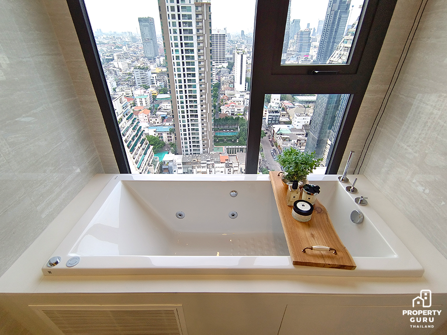 ส่วนห้องน้ำถ้ามีต้นไม้ตกแต่งให้ความรู้สึกใกล้ชิดธรรมชาติได้จะดี และถ้ามี "อ่างอาบน้ำ" ด้วยจะได้คะแนนเยอะเลย หรือหากในคอนโดมีบ่อแช่น้ำร้อน (Onsen) หรือซาวน่า (Sauna) ด้วยจะยิ่งดีเลยเพราะคนญี่ปุ่นนิยมการแช่น้ำซึ่งถือเป็นกิจกรรมในชีวิตประจำวันเพื่อการพักผ่อนที่คนญี่ปุ่นขาดไม่ได้