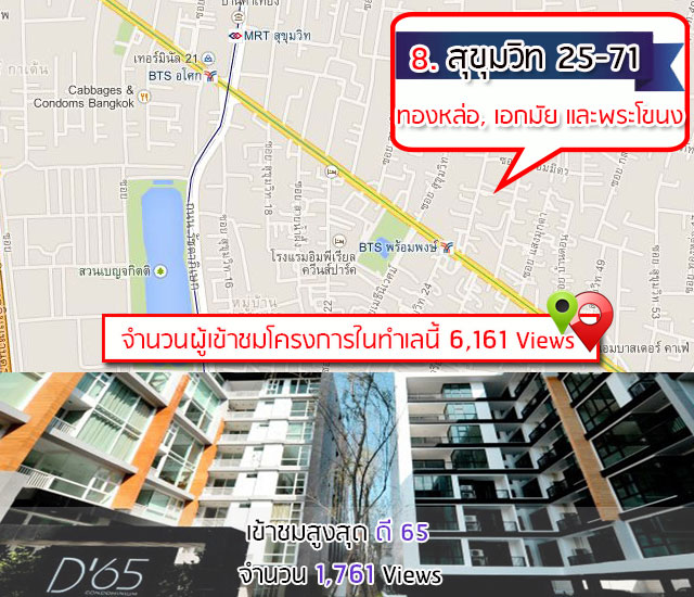 8. คอนโดโซนสุขุมวิทช่วงกลาง 25-71, ทองหล่อ, เอกมัย และพระโขนง