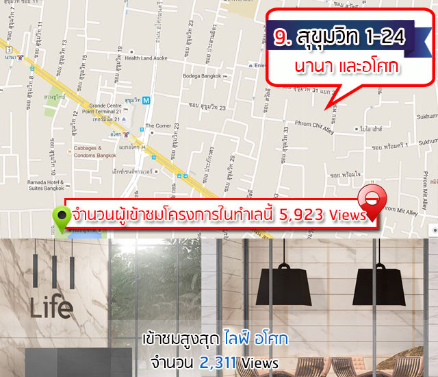 9. คอนโดโซนสุขุมวิทช่วงต้น 1-24, นานา และอโศก