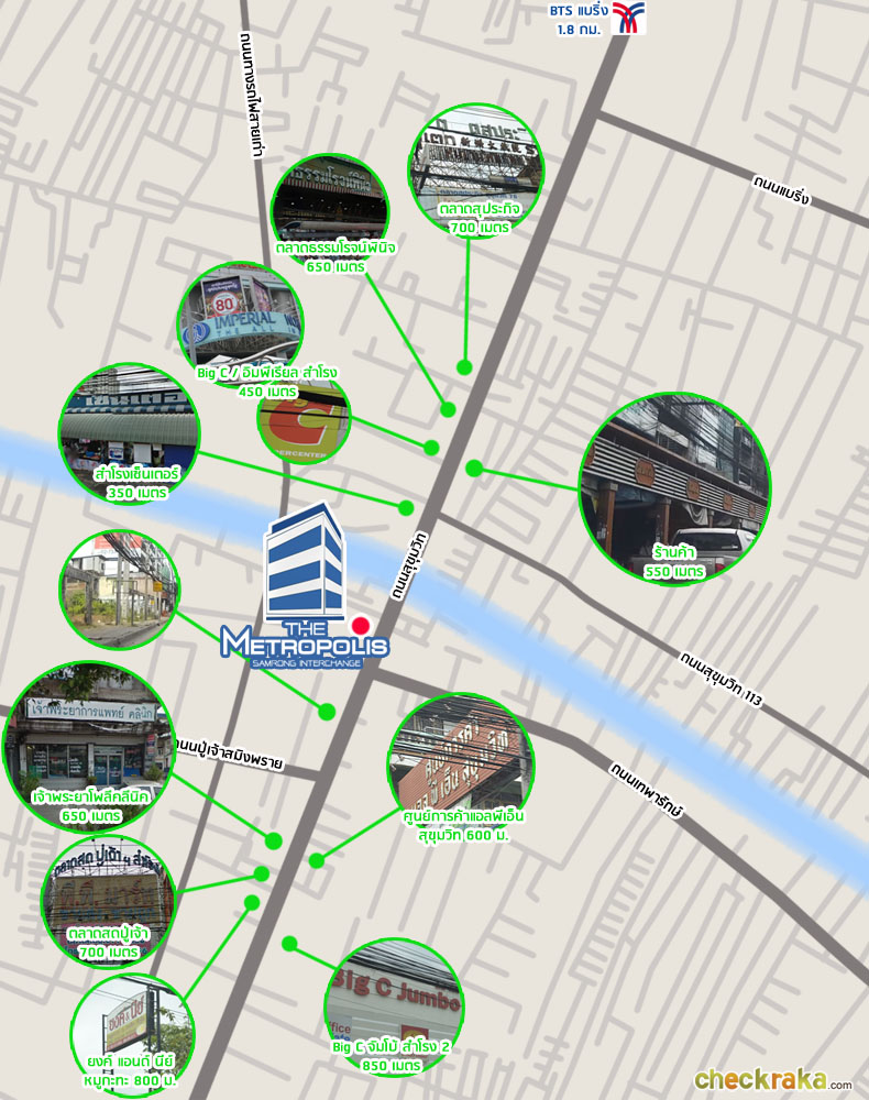 เส้นทางรถไฟฟ้าส่วนต่อขยายไปบางปูยังไม่เสร็จดีนัก แต่คอนโดหลายๆ โครงการก็ได้เตรียมเปิดตัวรองรับพื้นที่นี้กันแล้ว วันนี้ ทาง Checkraka จึงขอพาทุกท่านไปเยี่ยมชมทำเลของอีกหนึ่งโครงการที่กำลังจะเปิดตัว และเป็นที่ฮือฮากันในแถบนั้น แถมยังอยู่ติดสถานีรถไฟฟ้าสำโรงเลยค่ะ ซึ่งก็คือโครงการ เดอะ เมโทรโพลิส สำโรง อินเตอร์เชนจ์ (The Metropolis Samrong Interchange) นั่นเอง