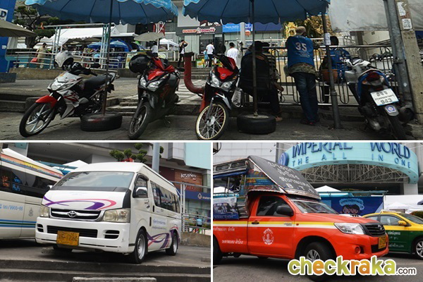และยังมีระบบขนส่งทั้งวินมอเตอร์ไซค์ รถตู้ และรถสองแถวอยู่หน้าอิมพีเรียลเวิลด์สำโรงเลยค่ะ