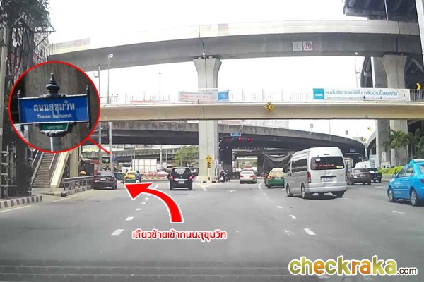 จากนั้นให้เตรียมชิดซ้ายเพื่อเลี้ยวต่อเข้าถนนสุขุมวิท