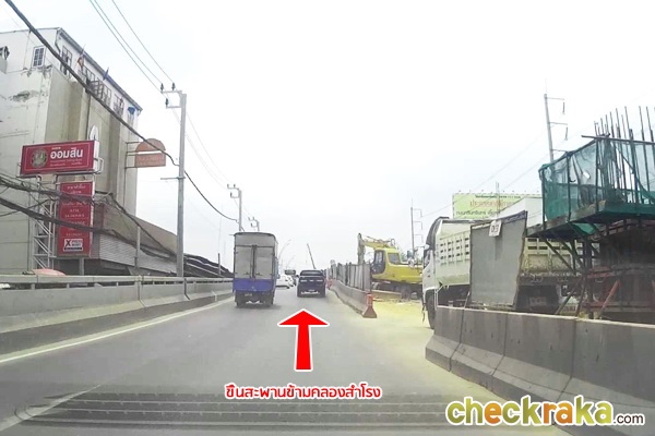ขับขึ้นสะพานข้ามคลองสำโรงไปก่อน