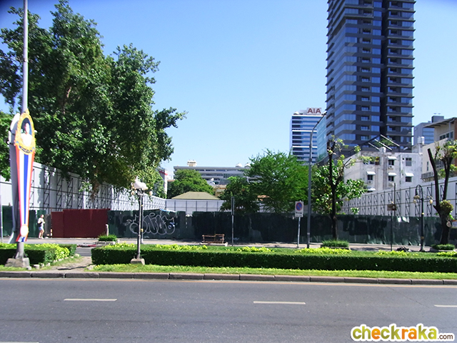 ด้านขวามือในรูปหลังรั้วจะเห็นกลุ่มตึกแถวที่เราคาดว่าทั้งหมดอยู่บนพื้นที่ของสำนักงานทรัพย์สินฯ