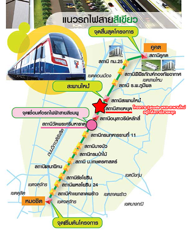 ระยะทางห่างจาก โครงการ Episode (เอพพิโซด พหลฯ-สะพานใหม่) ประมาณ 900 เมตรค่ะ