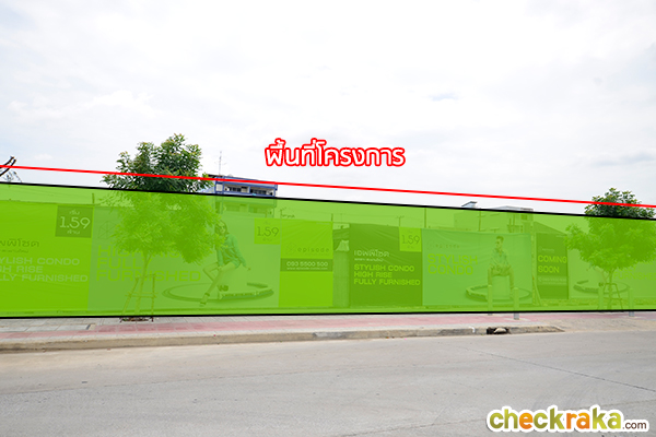 พื้นที่ภายในเขตก่อสร้างของโครงการยังเป็นพื้นที่ว่างเปล่าอยู่ค่ะ แต่มีการกั้นรั้วไว้แล้ว