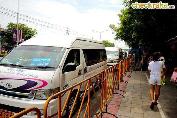 แถวนี้นอกจากจะมีรถเมล์หลายสายวิ่งผ่านแล้วยังมี "รถตู้" ให้บริการอีกหลายสายเช่นเดียวกันค่ะ เช่น