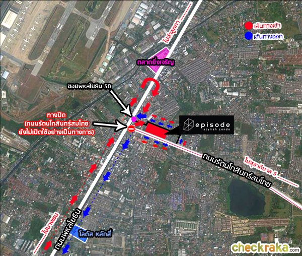 เส้นทางเข้า-ออกหลักของโครงการตอนนี้คือซอยพหลโยธิน 50