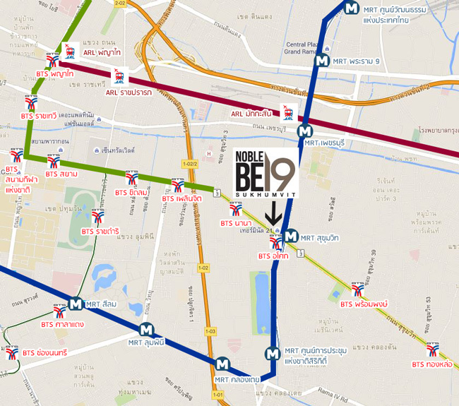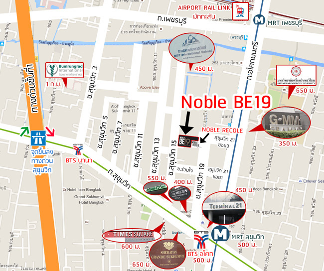 แผนที่โครงการ Noble BE19 และสถานที่สำคัญใกล้เคียงโครงการ
