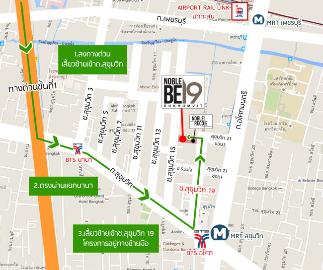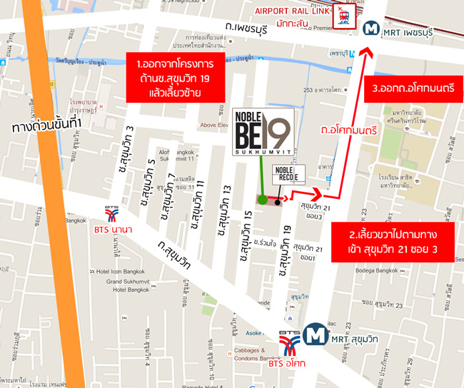 โนเบิลฯ ได้เปิดโครงการคอนโดใหม่แห่งแรกของปี 2559 ในทำเล "อโศก" กับโครงการ Noble BE19 วันนี้ Checkraka.com จะขอพาทุกท่านไปชมทำเลโครงการนี้กันค่ะ (ดูรีวิว Noble BE 19 ฉบับเต็มได้ที่นี่) (ดู VDO รีวิว Noble BE19 ได้ที่นี่) โดยโครงการนี้อยู่ติดกับคอนโดรุ่นพี่ของโนเบิลฯ คือ โนเบิล รีโคล สุขุมวิท 19 (Noble Recole Sukhumvit 19) (ซึ่งขายหมดภายใน 1 วัน) แต่มีจุดเด่นที่แตกต่างจากโครงการรุ่นพี่คือ เข้า-ออกจากถนนใหญ่สุขุมวิทได้สองทาง ทั้งสุขุมวิทซอย 19 และสุขุมวิทซอย 15 เลย (บางคนอาจสงสัยแล้วซอย 17 ล่ะ คำตอบคือสุขุมวิท 17 เป็นซอยตันค่ะและเข้าไม่ถึงโครงการนี้) ... เรามาดูรูปทำเลกันเลยดีกว่าค่ะ