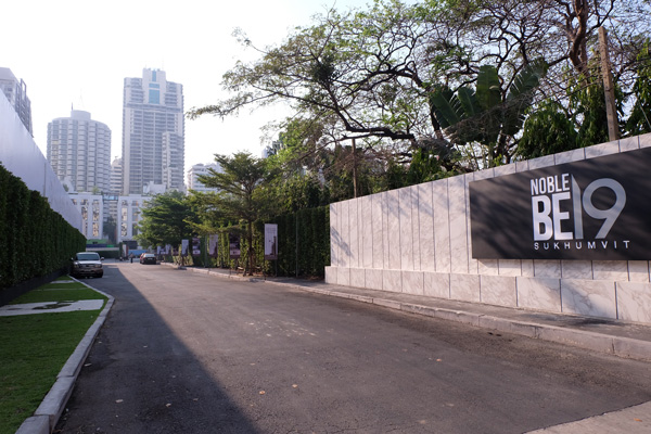 ภาพถนนทางเข้าโครงการ Noble BE19 Sukhumvit 19 ส่วนพื้นที่ล้อมรั้วด้านซ้ายคือ Noble Recole ค่ะ