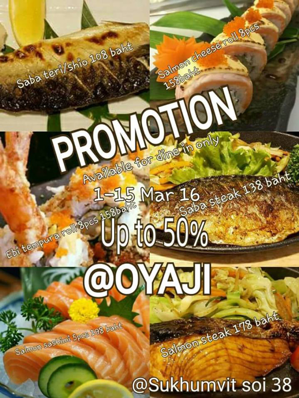 ถัดมาก็จะเป็นร้าน OYAJI เป็นร้านอาหารชื่อดังในซอยสุขุมวิทนี้ค่ะ ซึ่งตอนนี้กำลังมีโปรโมชั่นอยู่พอดีตามรูปด้านล่างเลยค่ะ