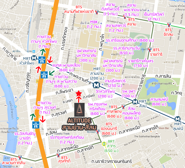 แผนที่สถานที่ต่างๆ บริเวณใกล้เคียง โครงการ อัลติจูด สามย่าน-สีลม (Altitude Samyan-Silom)