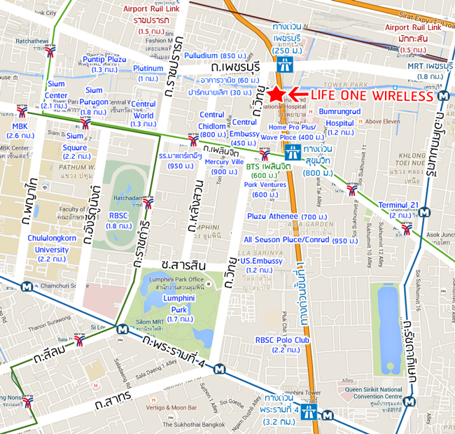 แผนที่สถานที่ต่างๆ บริเวณใกล้เคียง โครงการ Life One Wireless