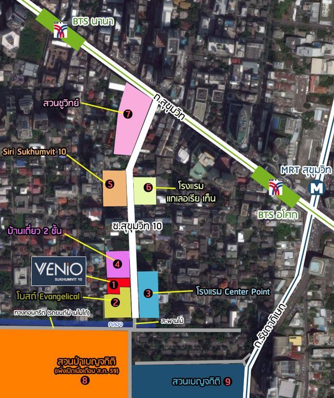 ทั้งหมดนี้คือ ภาพรวมทำเลรอบๆ โครงการ Venio Sukhumvit 10 ครับ นอกเหนือจากการที่โครงการนี้อยู่ในซอยที่เงียบสงบ (ซอยสุขุมวิท 10 เป็นซอยตันสำหรับรถยนต์) แล้ว ความใกล้กับสวนเบญจกิตินี่ก็ถือเป็น Hi-light เด็ดของโครงการเลยนะครับ เพราะเวลาเราอยู่ที่นี่ เราก็สามารถเดินไปชมนกต้นไม้ พร้อมกับออกกำลังกายได้ทุกวันแบบไม่ต้องขับรถเลย ซอยนี้เป็นหนึ่งในซอยที่ค่อนข้างเป็นที่นิยมของชาวต่างชาติ เพราะมีชาวต่างชาติอยู่กันเยอะ และมีสวนสาธารณะสวยๆ ถึง 2 สวนใกล้กันคือสวนเบญจกิติ และสวนชูวิทย์ (ที่น่าเสียดายยังปิดอยู่) ใครที่สนใจโครงการนี้ ก็สามารถลงทะเบียนออนไลน์ได้เลยนะครับ ตาม Link ด้านล่างนี้