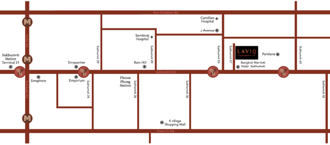 แผนที่สถานที่ต่างๆ บริเวณใกล้เคียง โครงการ LAVIQ Sukhumvit 57