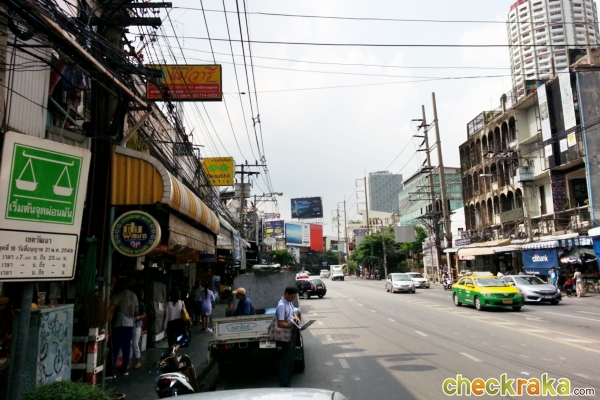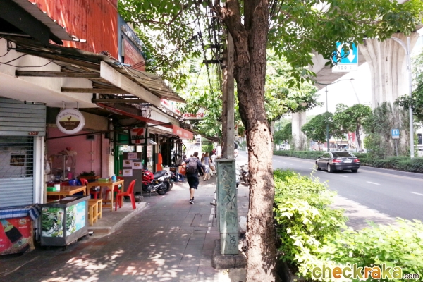 พอข้ามทางม้าลายเดินตรงมาเรื่อยๆ ก็จะผ่านแนวร้านอาหาร และร้านสะดวกซื้อ 7-Eleven อยู่ทางซ้ายมือ