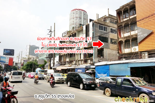 พรีวิวทำเลคอนโดใหม่รอบนี้ เรามากันที่ซอยสุขุมวิท 57 เพื่อลงพื้นที่ดูทำเลโครงการคอนโดใหม่ "ลาวีค สุขุมวิท 57 (LAVIQ Sukhumvit 57)" จาก Real Asset เพียง 3 นาทีจาก BTS ทองหล่อกับคอนโดมิเนียมระดับ Luxury ตกแต่งด้วยแบรนด์ระดับโลก FENDI CASA ในราคาเริ่มต้น 9 ล้านบาท ปัจจุบันเปิดให้ลงทะเบียน และกำลังจะมีงาน Pre-Sale ที่ โรงแรม Bangkok Marriott Hotel Sukhumvit ในวันที่ 1 - 2 ต.ค. 59 นี้ด้วยค่ะ วันนี้ Checkraka.com จึงขอลงพื้นที่พาไปสำรวจทำเลรอบๆ โครงการกันนะคะ