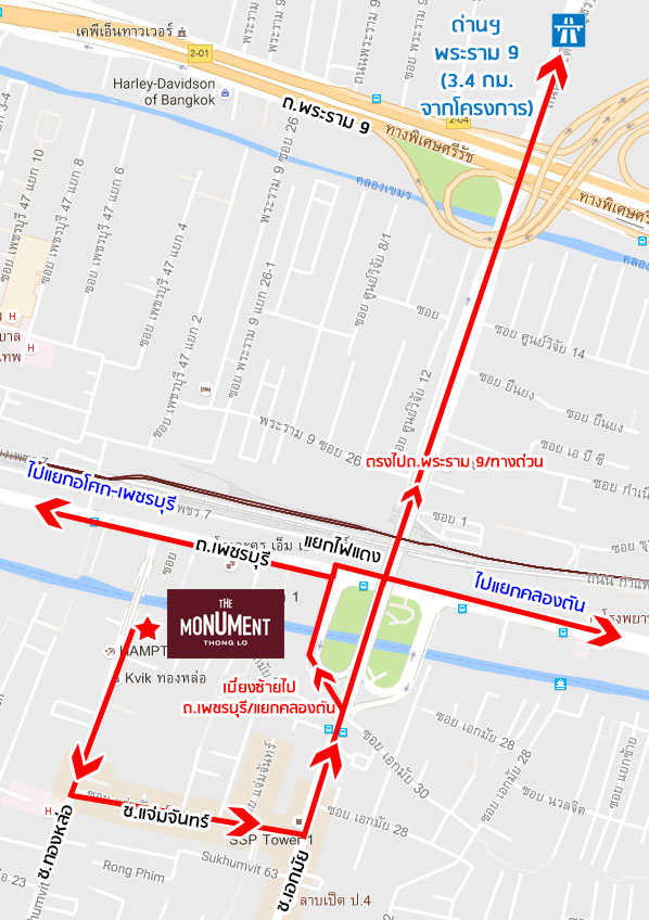 แผนที่สถานที่ต่างๆ บริเวณใกล้เคียง โครงการ The Monument Thonglo
